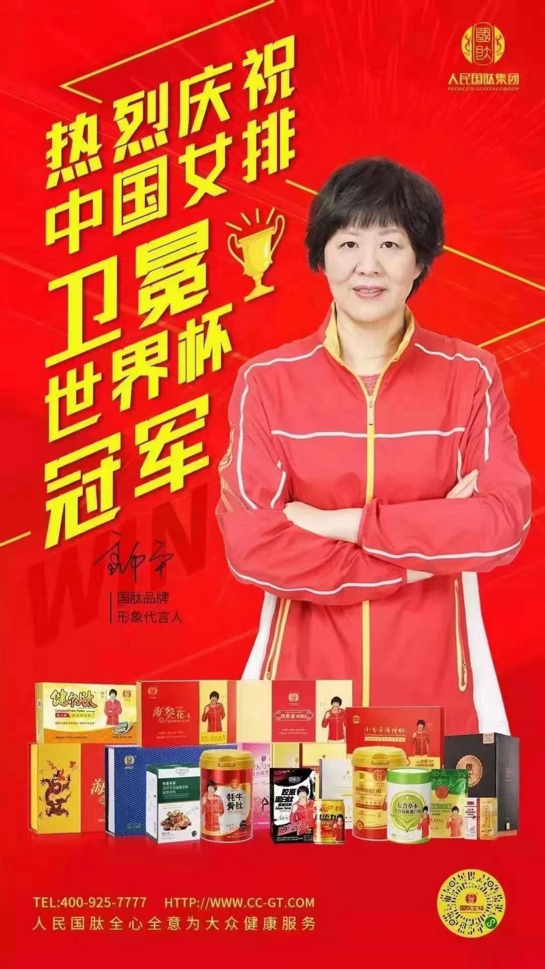 一直以來,郎平教練帶領(lǐng)中國女排以專業(yè)、健康、親和友善以及鍥而不舍的為國爭光,贏得廣大國人的支持與尊重。如今,在郎平教練精神的感召和指引下,人民國肽將堅(jiān)持“全心全意為大眾健康服務(wù)”理念,傳承和發(fā)揚(yáng)“女排精神”,堅(jiān)定信心不斷創(chuàng)新,以為大眾帶來專業(yè)、安全、優(yōu)質(zhì)的健康產(chǎn)品,為郎平教練添彩增光!同時(shí),以郎平教練為精神指引,人民國肽集團(tuán)也將踏實(shí)發(fā)展,極致追求高品質(zhì),矢志打造享譽(yù)世界、受人尊敬的中國肽健康品牌!
