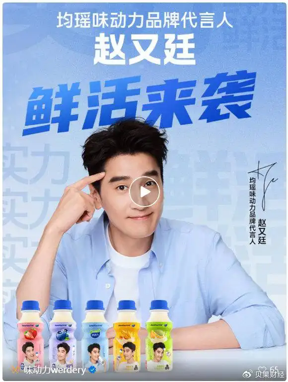 均瑤味動力今天正式官宣演員趙又廷(明星代言公司)為品牌代言人,并同步釋出涵蓋四大核心產(chǎn)品線的代言海報及花絮視頻。這標志著品牌在煥新升級與情緒價值溝通層面邁出重要一步,也延續(xù)了其以“實力”為核心的人物合作傳統(tǒng)。