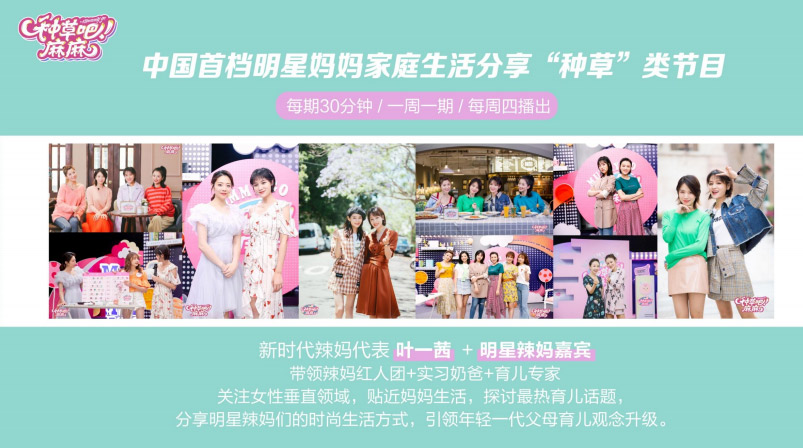《種草吧麻麻》中國內(nèi)地知名女歌手、主持人、演員葉一茜強勢加盟,節(jié)目每期邀請一位明星媽媽帶團助陣,全能辣媽葉一茜與明星媽媽帶團種草,一起探索家庭智慧,分享時尚媽媽們的生活方式。