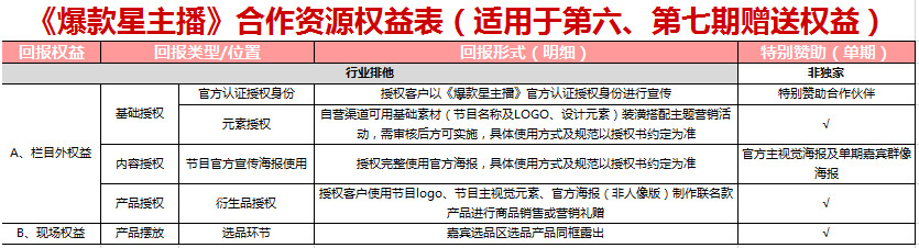 《爆款星主播》指定產(chǎn)品合作資源權(quán)益表(適用于第六、第七期)