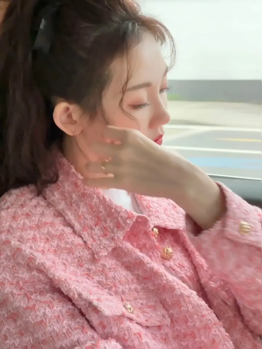 苗苗穿粉色小香外套甜美精致 扎高馬尾少女感十足