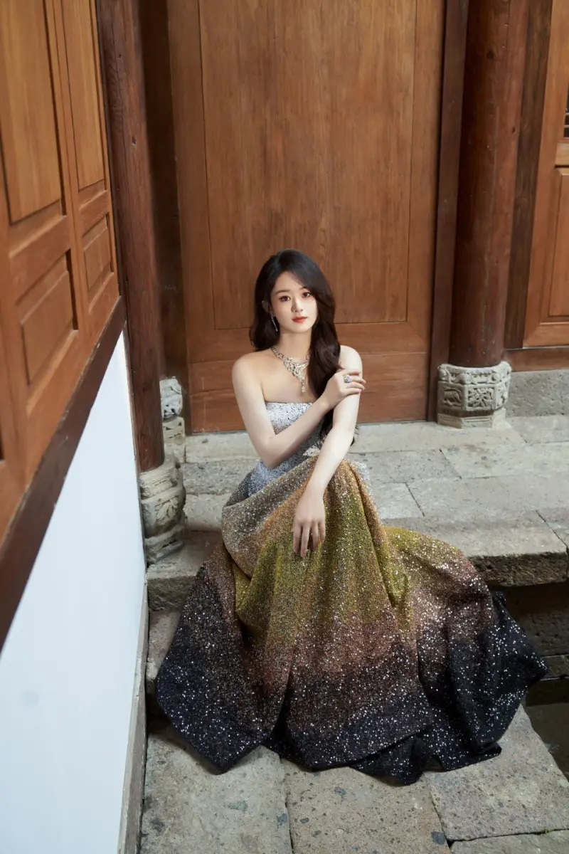 趙麗穎一襲抹胸裙高貴典雅。