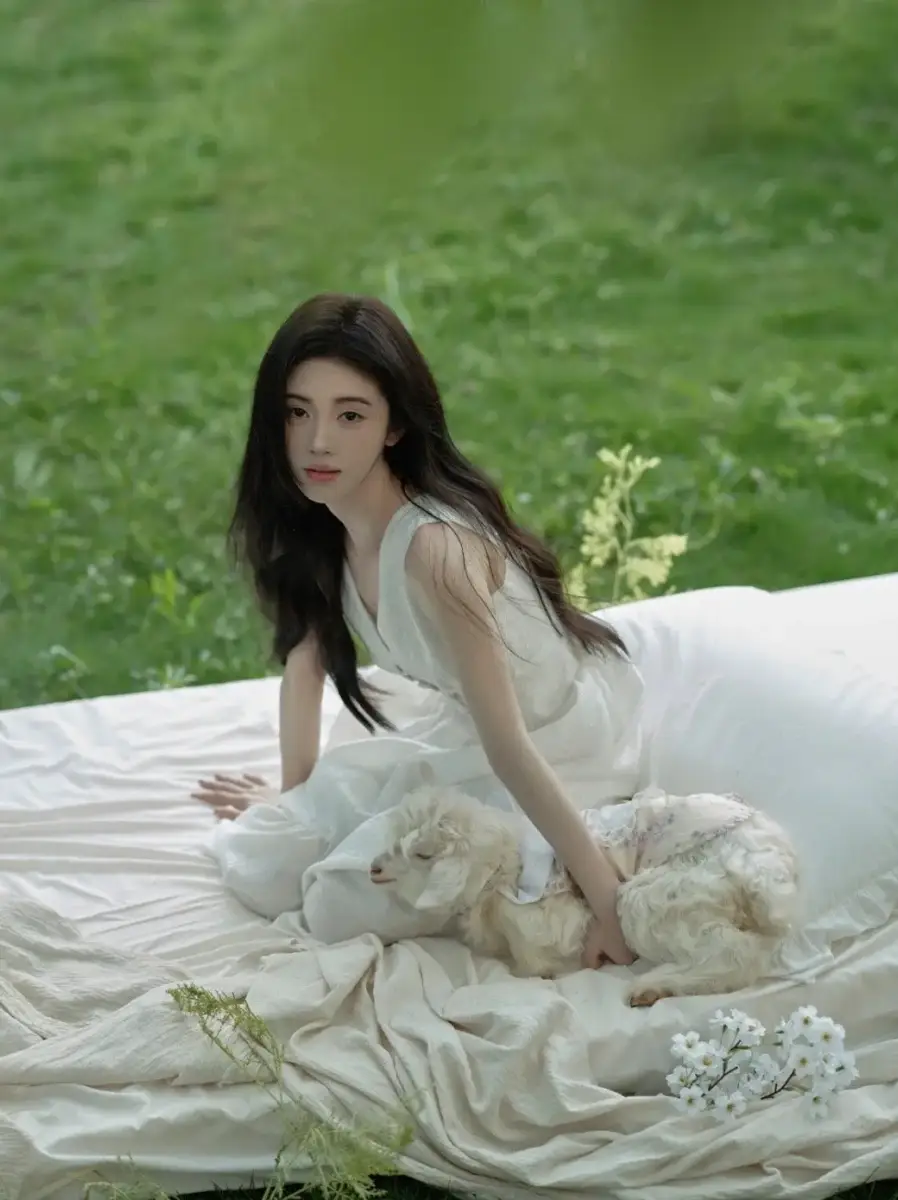 鞠婧祎長發(fā)飄飄,氣質(zhì)突出。