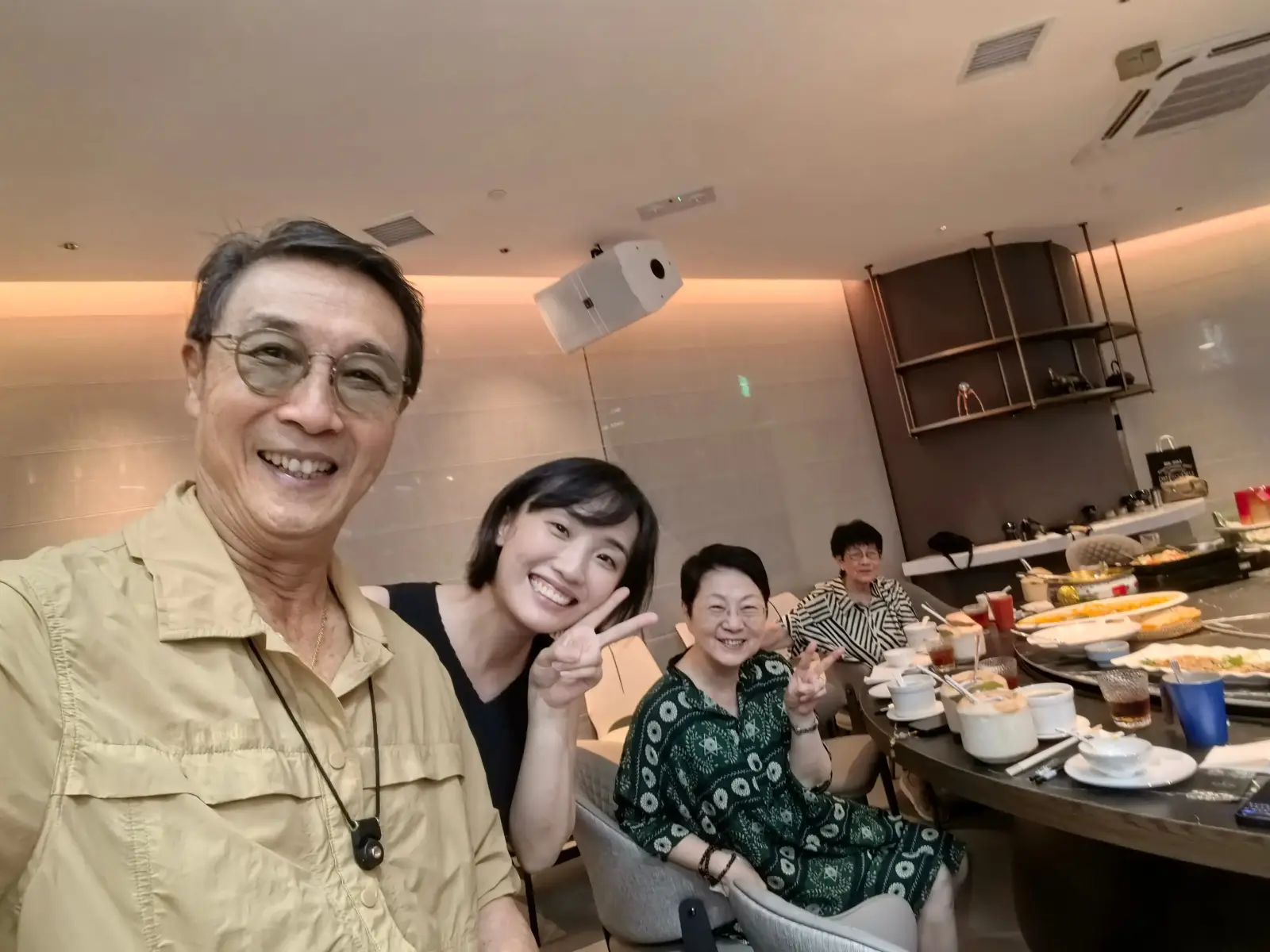 劉松仁與胡歌妻子合照,胡歌的妻子看上去活潑又甜美。