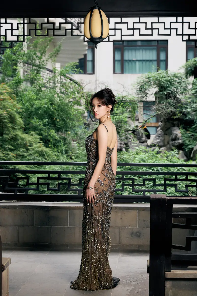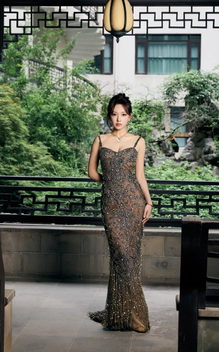 程瀟穿碎鉆透視裙秀曲線 古典婀娜訴說(shuō)夏日盎然