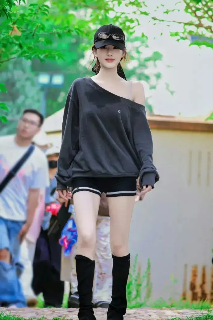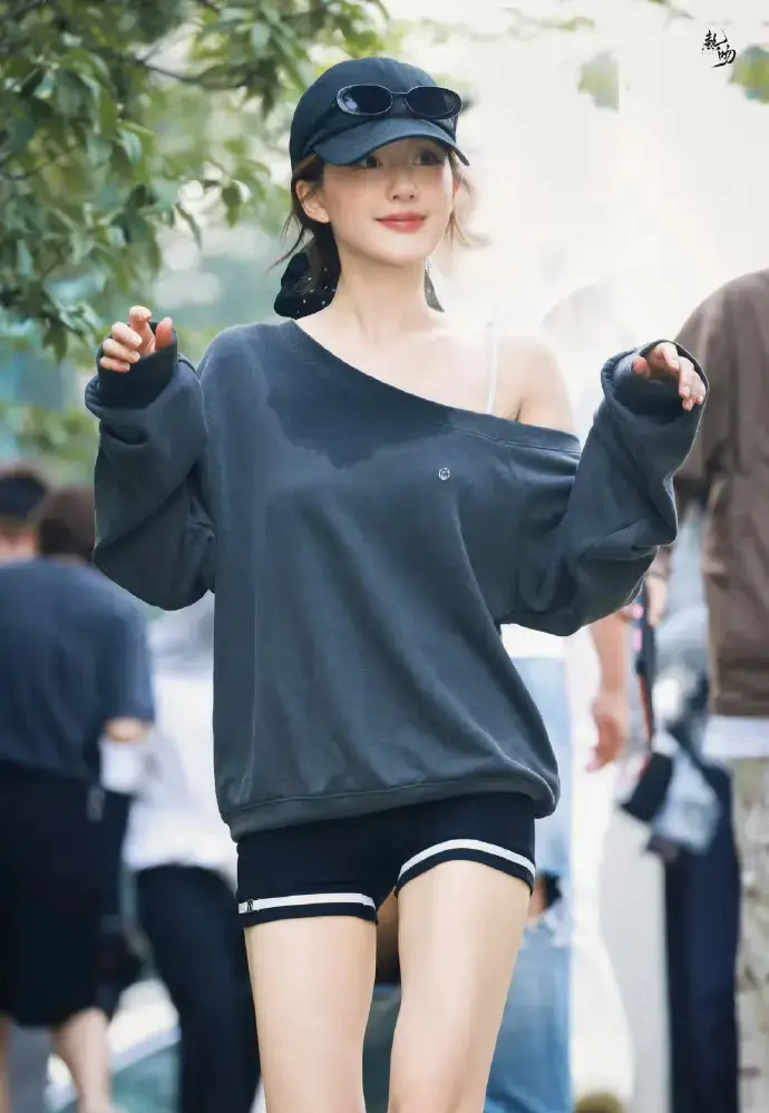 趙露思露肩黑衛(wèi)衣純欲感十足 超短褲秀白嫩長腿
