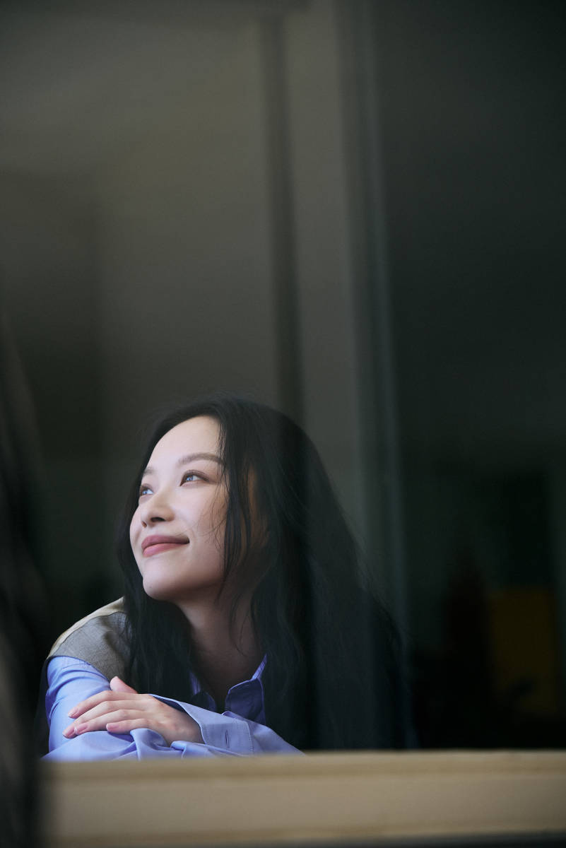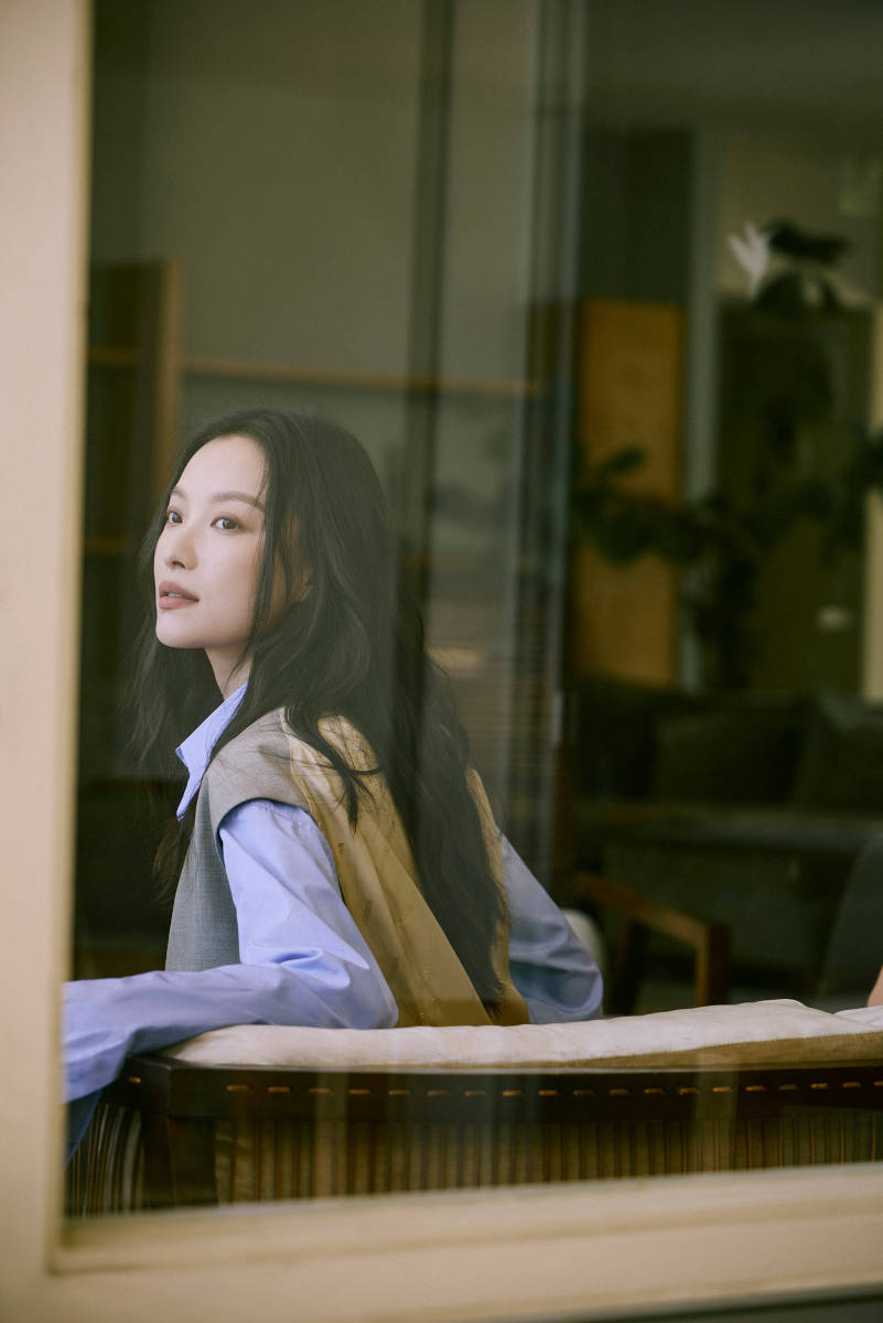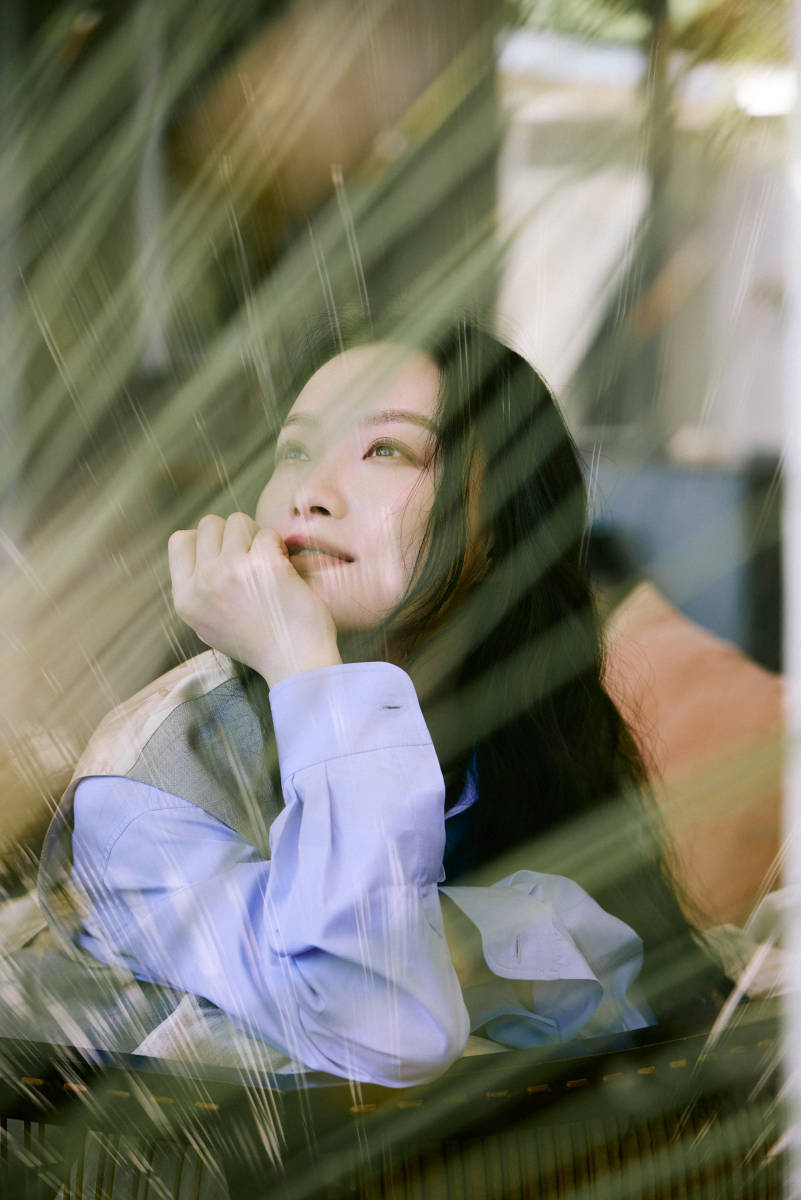 倪妮倚在窗邊,眼神朦朧夢幻。