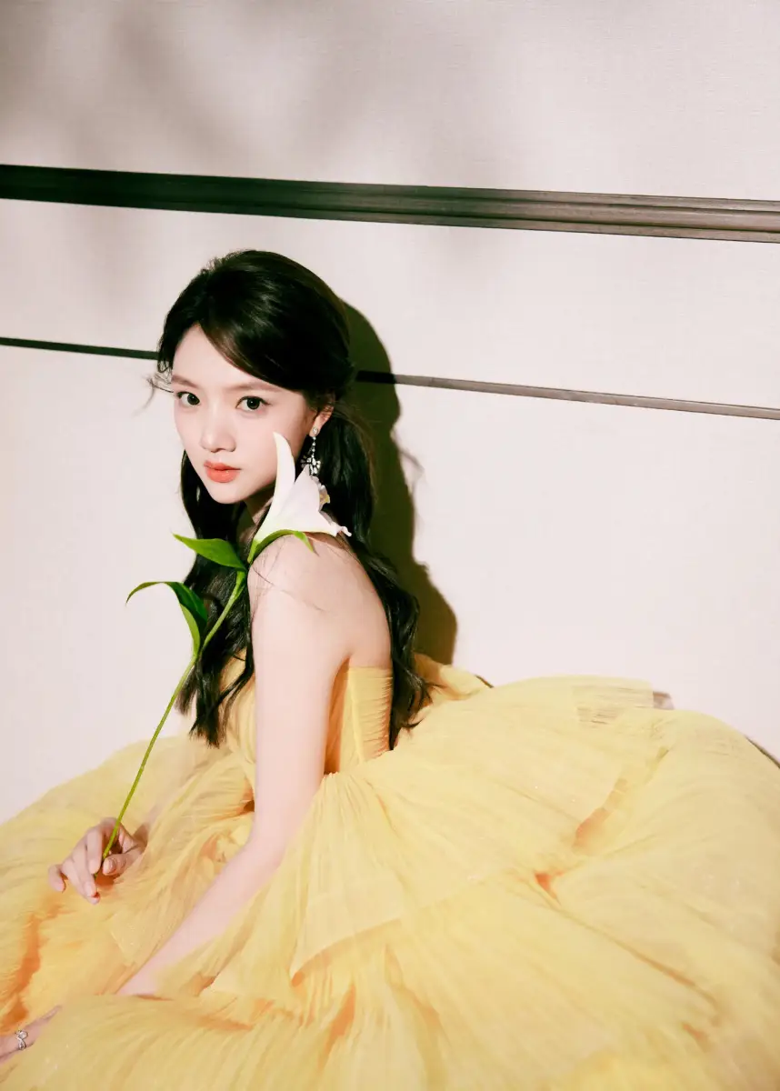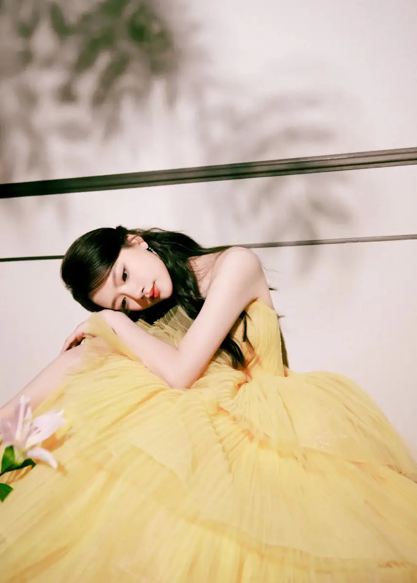 任敏穿黃色抹胸裙甜美動(dòng)人 手捧鮮花盡顯少女情懷
