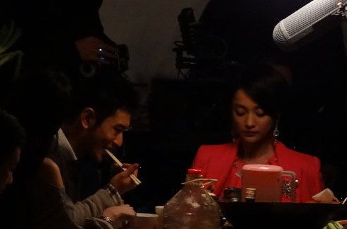 黃曉明與周迅吃路邊攤 頻摳鼻打哈欠