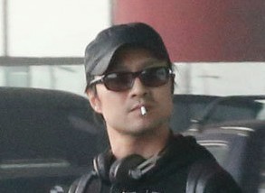 汪峰黑衣抵京一臉嚴肅 出機場忙過煙癮