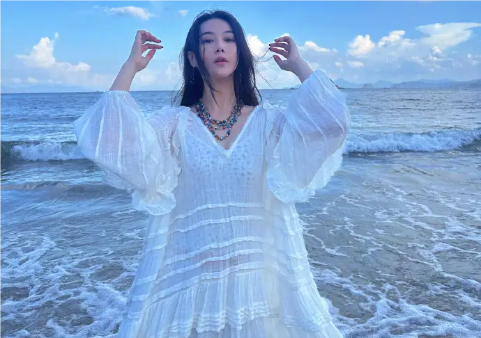 張馨予海邊回眸美艷大方 一身白衣清純動(dòng)人