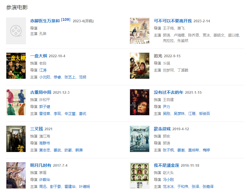 代表作品:瘋狂的石頭、高興、活著、父母愛(ài)情、黃金大劫案、烈日灼心