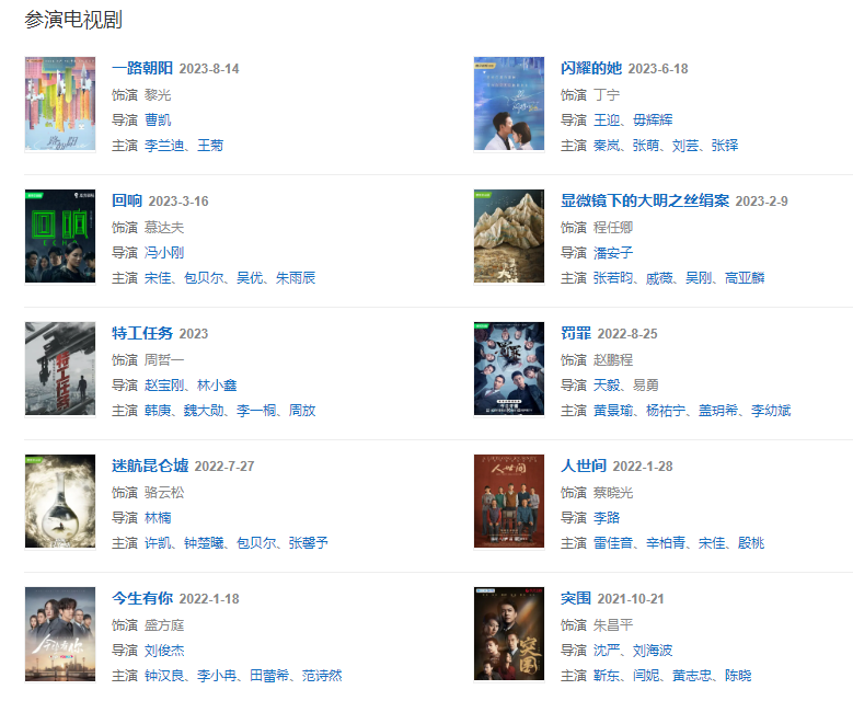 2022118日,主演的都市情感電視劇《今生有你》播出 ;128日,參演的現(xiàn)實(shí)主義題材大劇《人世間》播出  。
