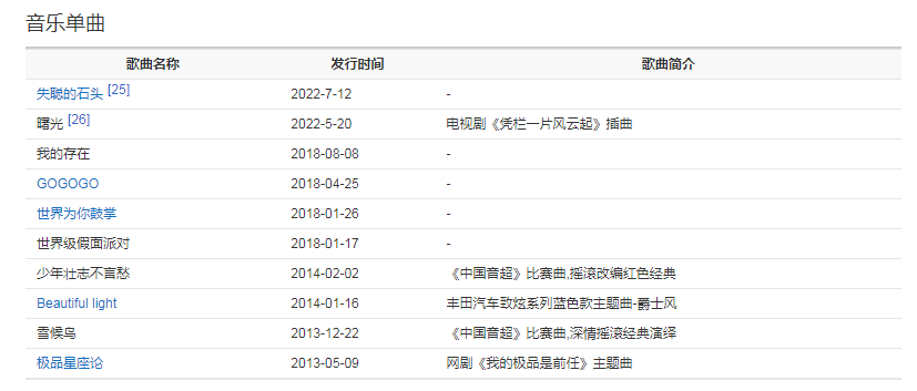 主要成就:《音樂先鋒榜》2012年度先鋒新人