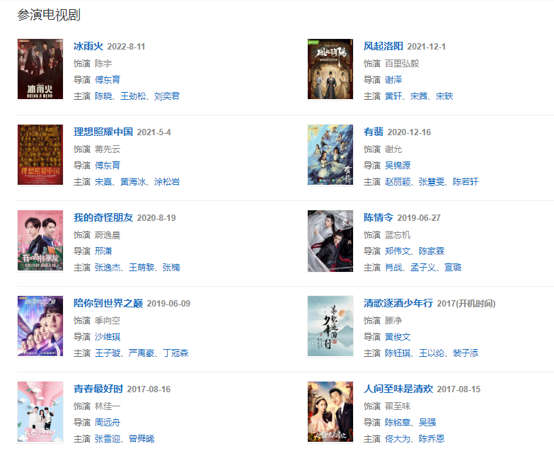 代表作品:有翡、陪你到世界之巔、無感、我的世界守則、陳情令、風(fēng)起洛陽、人間至味是清歡