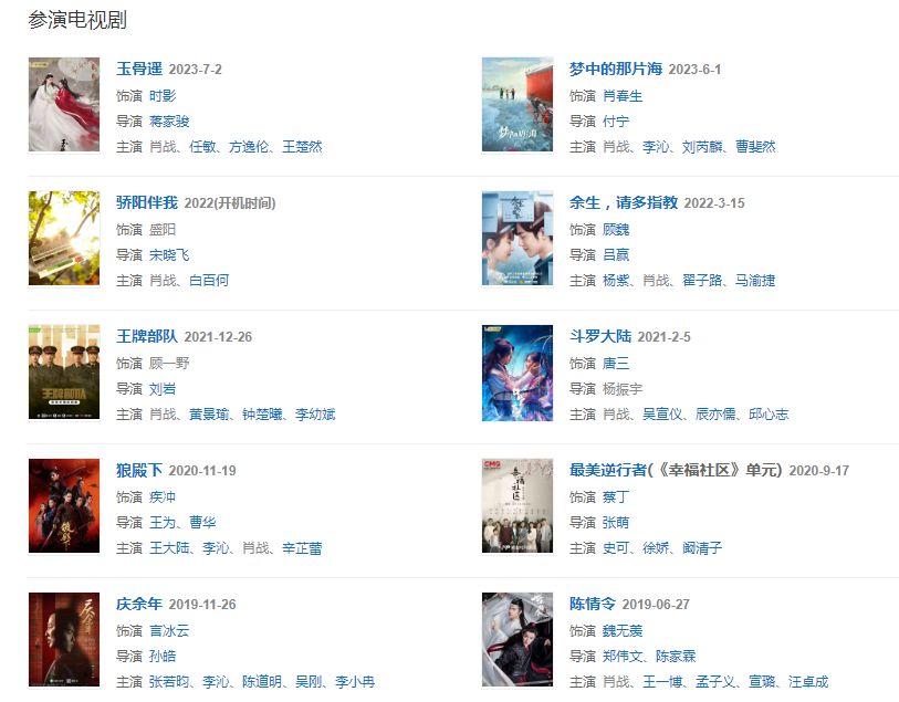 2019627日,古裝仙俠劇《陳情令》在騰訊視頻播出,肖戰(zhàn)憑魏無羨一角贏得廣泛關(guān)注;913日,主演的古裝仙俠電影《誅仙I》在全國上映。