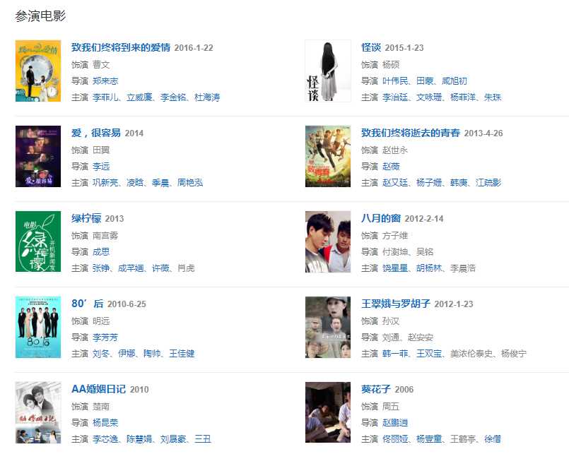 代表作品:金耳環(huán)、金玉良緣、杉杉來了、如懿傳、扶搖、琉璃、山河令、捕