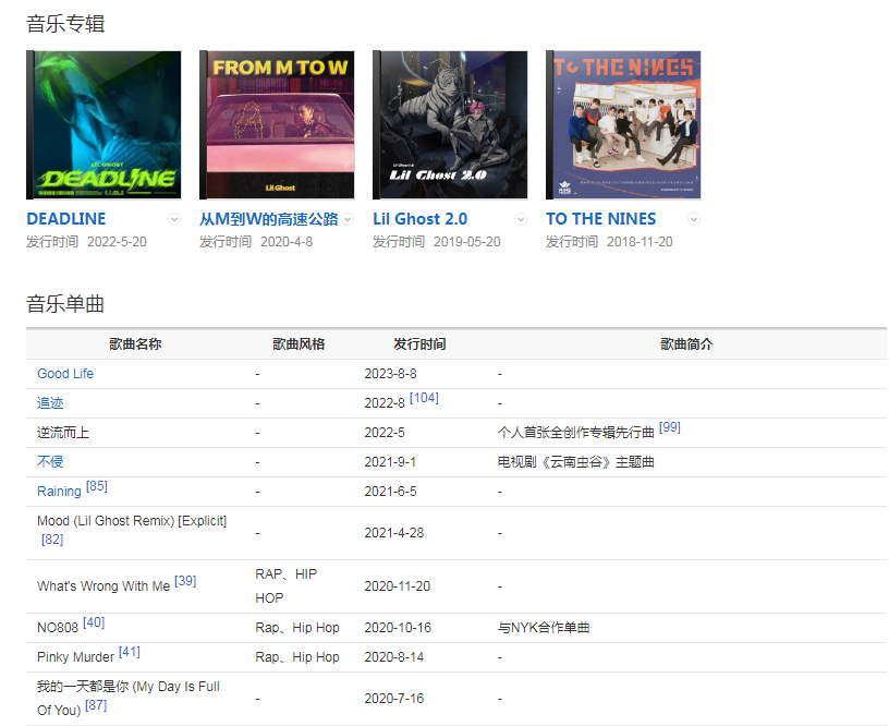 202149日,加盟北京冬奧會真人秀《冬夢之約》 ;428日,發(fā)布混音單曲《Mood (Lil Ghost Remix|Explicit)》 。91日在冒險(xiǎn)網(wǎng)絡(luò)劇《云南蟲谷》中演唱主題曲《不侵》。