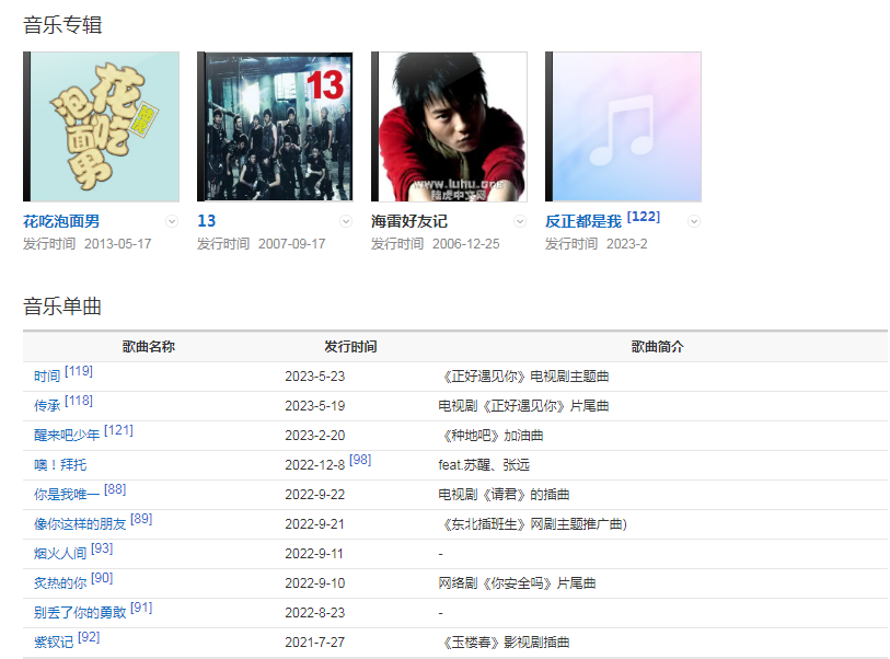 2013年,推出首張個(gè)人專輯《花吃泡面男》 。