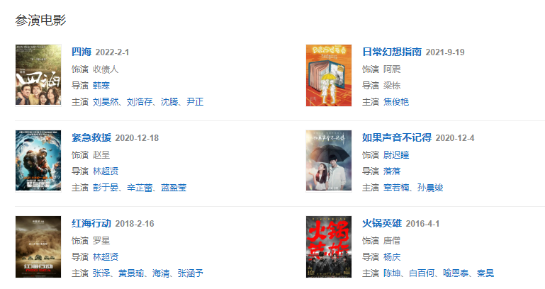 2020年12月4日,出演電影《如果聲音不記得》 ;12月18日,與彭于晏、辛芷蕾合作主演的電影《緊急救援》上映,在片中飾演交通海上應(yīng)急反應(yīng)特勤隊(duì)絞車手趙呈 。