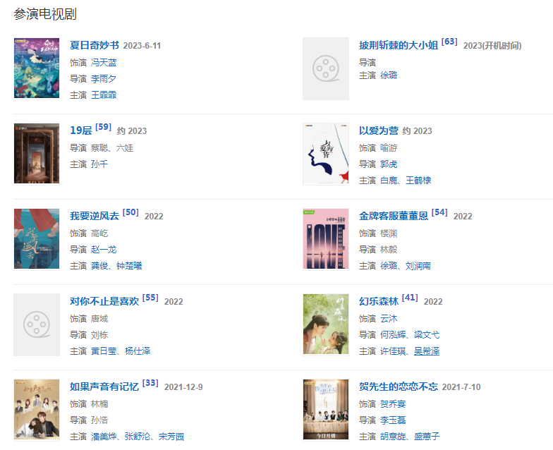 2019年,出演都市勵志愛情劇《我好喜歡你》 ;同年,主演的醫(yī)療救援劇《極速救援》首播 。