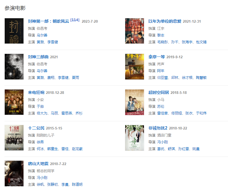 2010年,擔(dān)任愛情喜劇電影《非誠勿擾2》的副導(dǎo)演 。