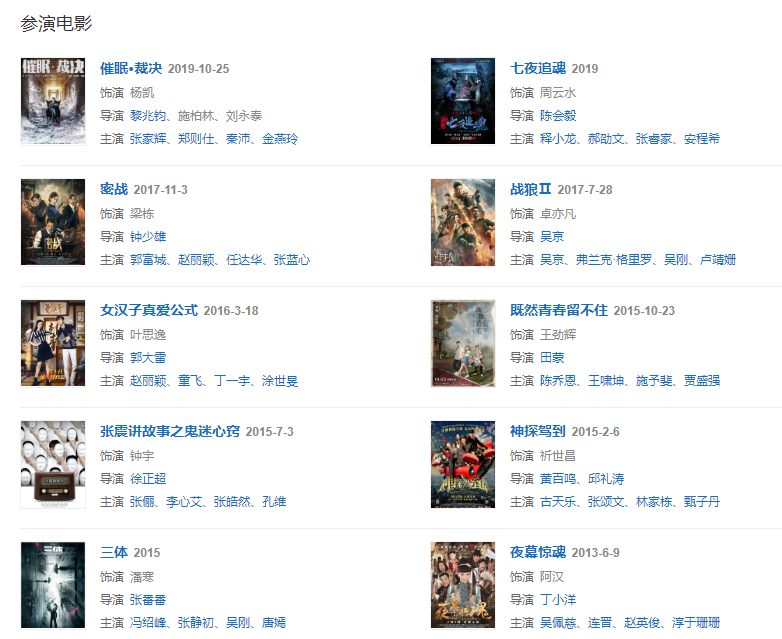 代表作品:戰(zhàn)狼Ⅱ、一起來看流星雨、勝女的代價、隋唐演義、杉杉來了、溫暖的弦