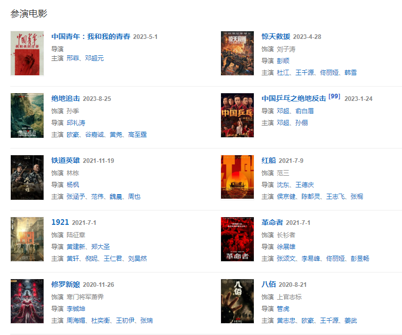 202171日,參演的電影《1921》上映,在劇中飾演陸征章;參演電影《革命者》上映; 1119日,主演的電影《鐵道英雄》上映 ;1227日,官宣:俞灝明擔任2021年中國金雞百花電影節(jié)開幕式暨第34屆中國電影金雞獎提名者表彰儀式演出嘉賓。