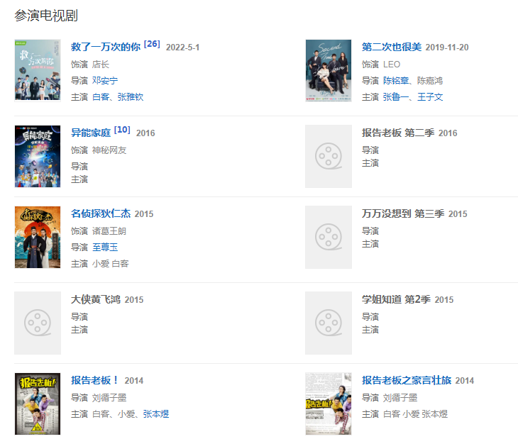 2013年,執(zhí)導(dǎo)并參演的《報告老板》系列網(wǎng)絡(luò)劇上線,并獲得2013中國電視榜年度網(wǎng)劇提名 。