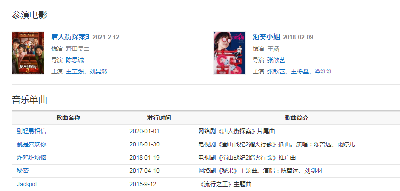 2019年,出演由陳思誠(chéng)監(jiān)制的懸疑網(wǎng)絡(luò)劇《唐人街探案》 ,還出演了懸疑題材電影《唐人街探案3》和民國(guó)傳奇言情劇《十二譚》。