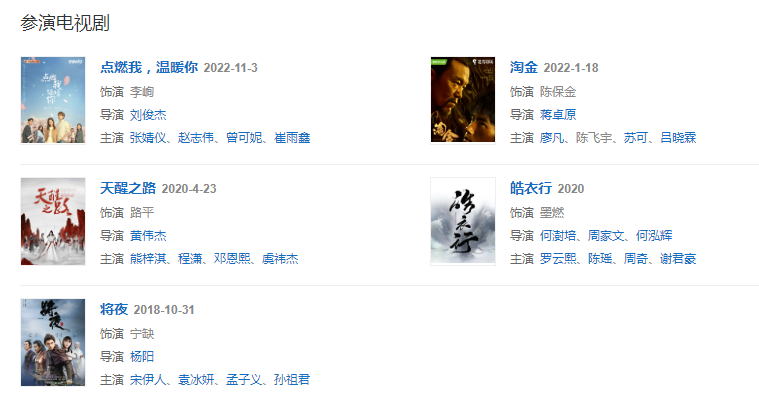2022113日,主演的青春都市情感劇《點燃我,溫暖你》播出。