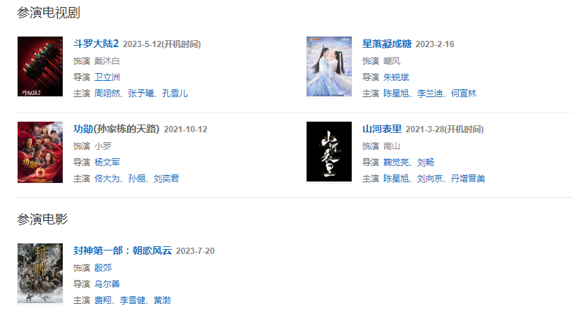 2023年2月16日,與陳星旭、李蘭迪領(lǐng)銜主演的古裝仙俠劇《星落凝成糖》在江蘇衛(wèi)視、浙江衛(wèi)視首播,飾演心思深沉的沉淵族三皇子嘲風(fēng);5月12日,與周翊然、張予曦聯(lián)袂主演的青春勵(lì)志冒險(xiǎn)劇《斗羅大陸2》開機(jī),在劇中飾演星羅王國二皇子戴沐白;7月20日,與費(fèi)翔、李雪健聯(lián)合主演的古裝奇幻電影《封神第一部:朝歌風(fēng)云》上映,在片中飾演商紂王殷壽的長子殷郊。