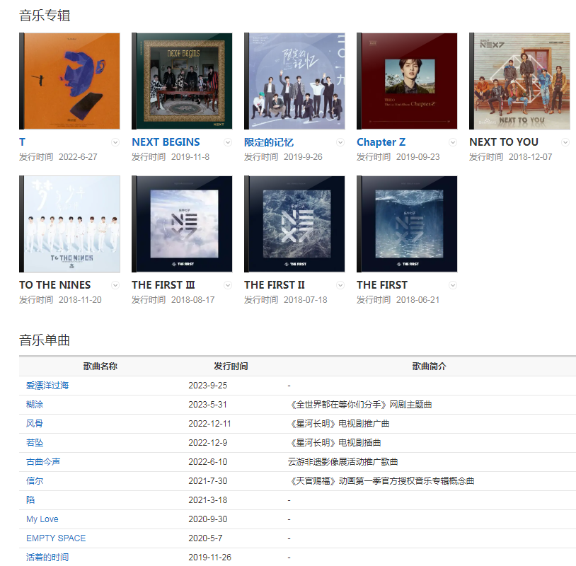 2019年9月23日,推出首張個(gè)人MINI專(zhuān)輯《Chapter Z》;10月17日,入選2019福布斯中國(guó)30歲以下精英榜。