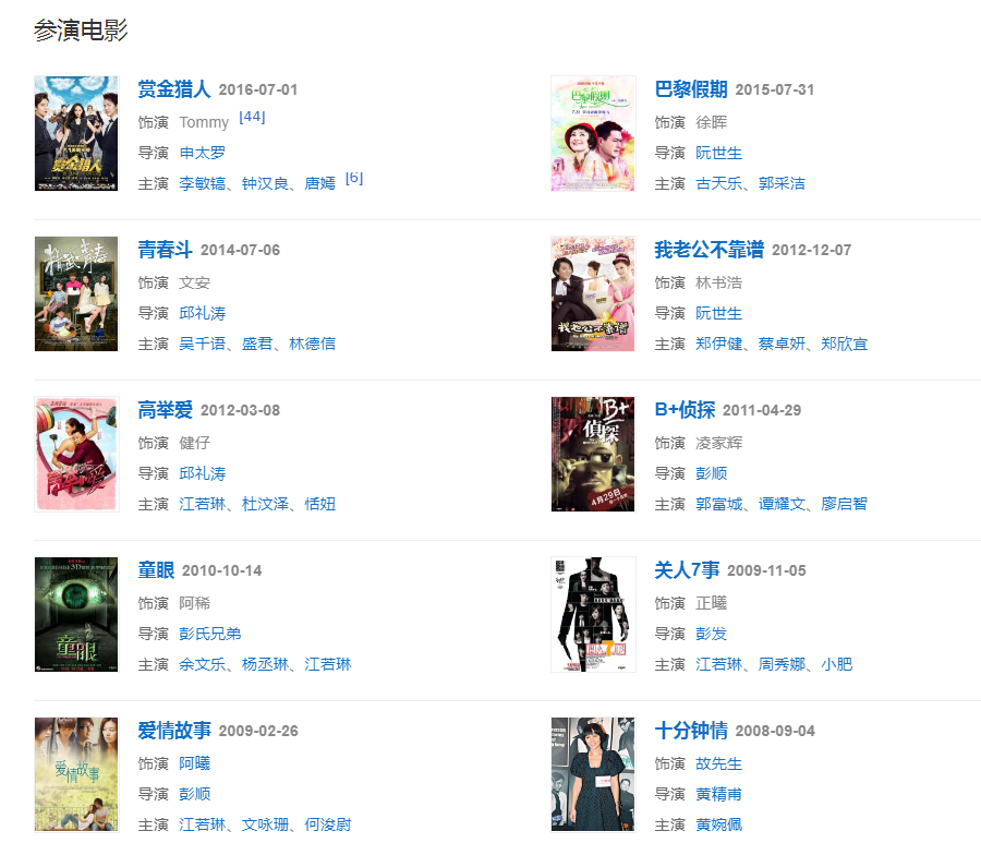 2016年,出演動(dòng)作電影《賞金獵人》;同年,出演電視劇《獨(dú)孤天下》。