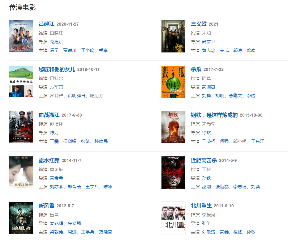 代表作品:警壇風(fēng)云、重案六組、重慶諜戰(zhàn)、諜變1939、霍元甲、北平無戰(zhàn)事、彭德懷元帥