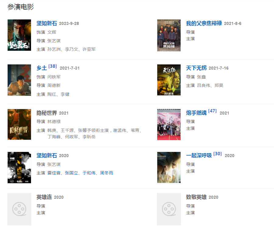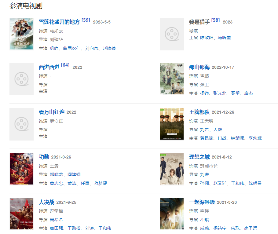 代表作品:紫荊勛章、大雪無痕、亮劍、沉默與謊言、錯(cuò)愛2、國歌