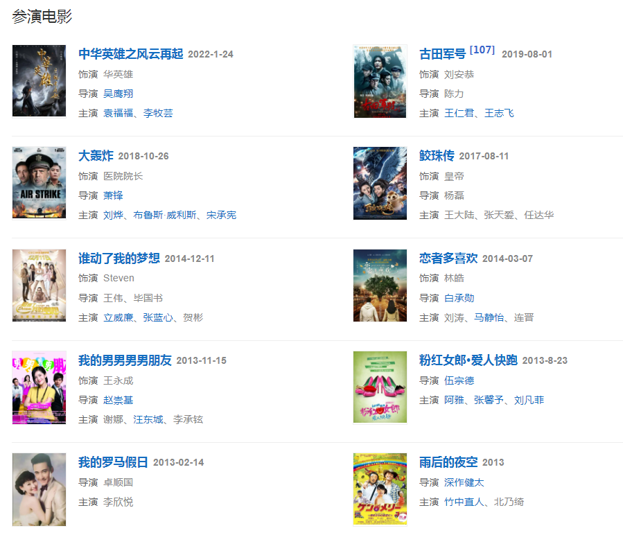 2022124日,主演的電影《中華英雄之風(fēng)云再起》上映。