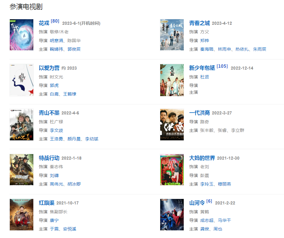 2022年1月18日,特別出演的電視劇《特戰(zhàn)行動》播出;3月27日,出演的近代歷史傳奇劇《一代洪商》在中央電視臺電視劇頻道播出;4月6日,參演的當代農村劇《青山不墨》播出,在劇中飾演杜廣祿。
