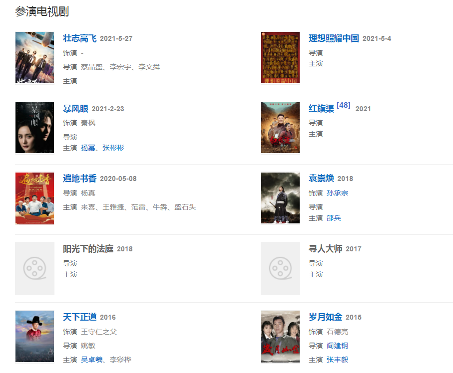 2021年,主演國安題材當(dāng)代都市反諜大劇《暴風(fēng)眼》;參演電視劇《紅旗渠》。