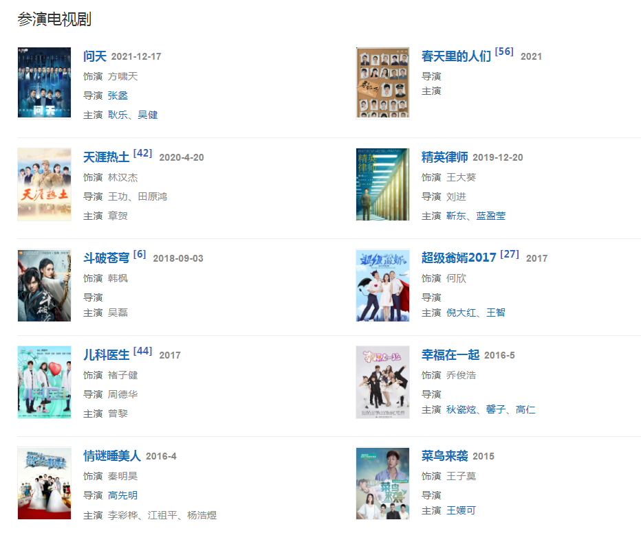 2021116日,與李曉峰主演的電視劇《春天里的人們》在央視八套播出  ;122日,與姜超主演的國產(chǎn)科幻災(zāi)難電影《末日救援》在騰訊視頻獨(dú)家上映;1217日,與何雨晴等主演的新時代航天事業(yè)電視劇《問天》在央視一套播出。
