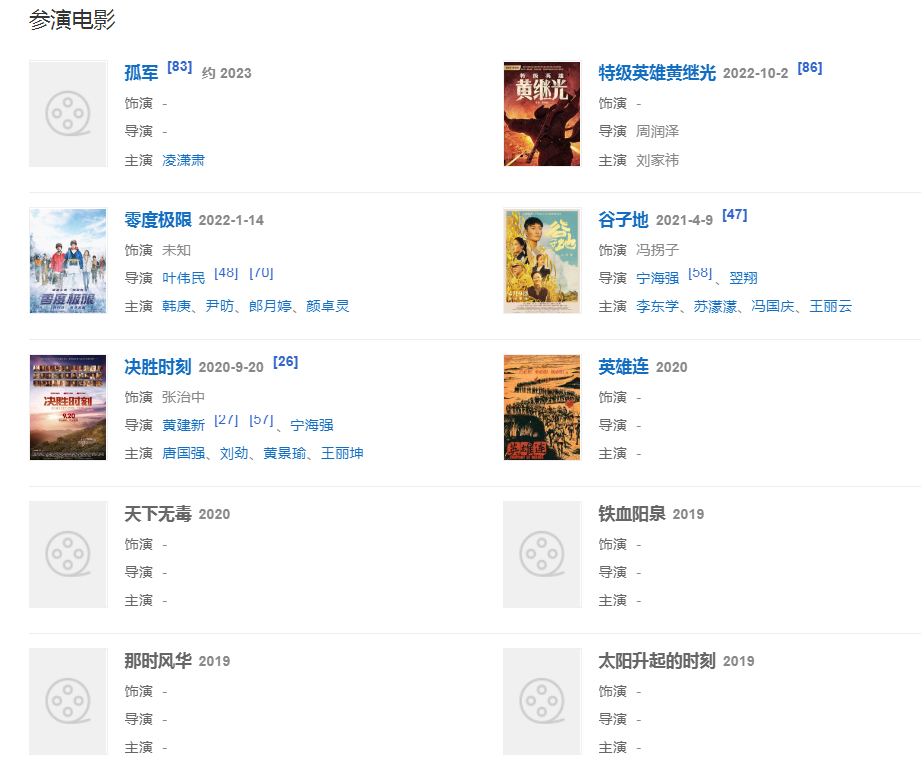 2020年,出演的抗疫題材電視劇《最美逆行者》和革命歷史題材劇《跨過(guò)鴨綠江》先后在央視一臺(tái)播出。