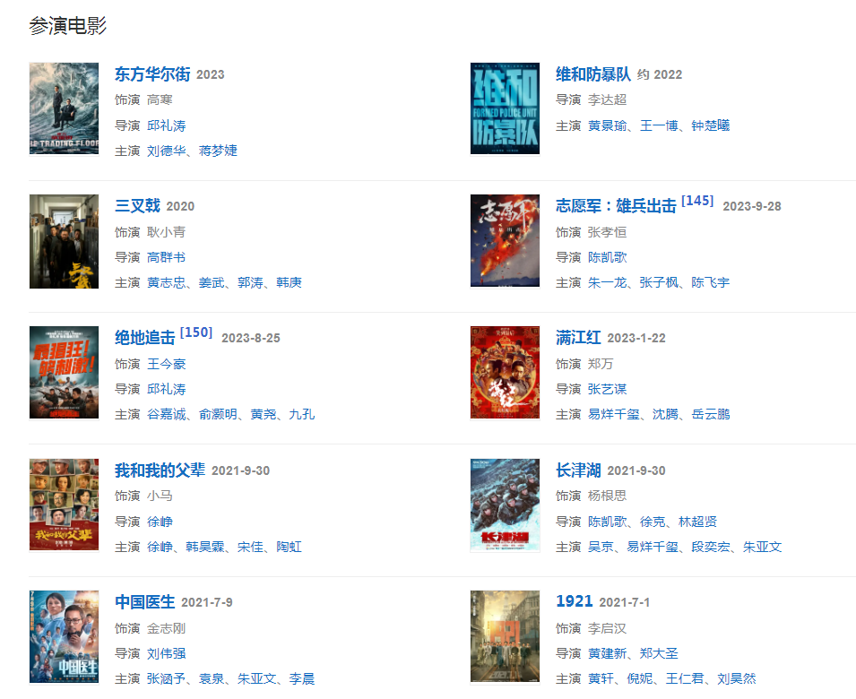 2020年主演的電影《八佰》上映;1128日,提名第33屆中國電影金雞獎最佳男配角。