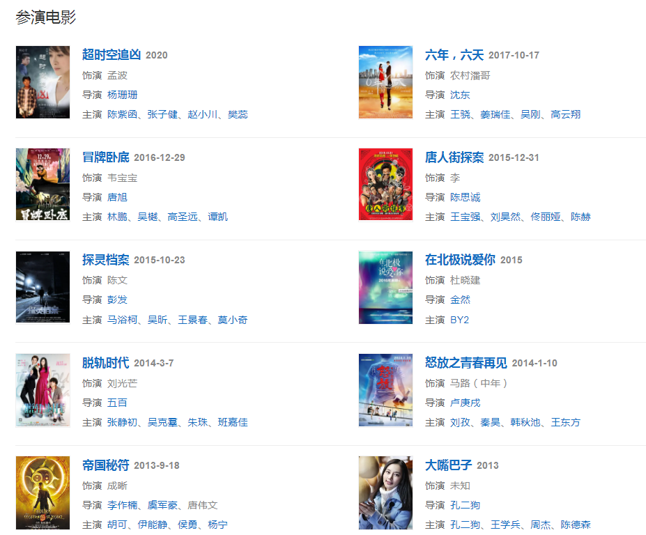 202041日,搭檔張雨綺、姜超領(lǐng)銜主演的超級網(wǎng)劇《龍嶺迷窟》在騰訊視頻全網(wǎng)獨(dú)播,劇中扮演胡八一一角。