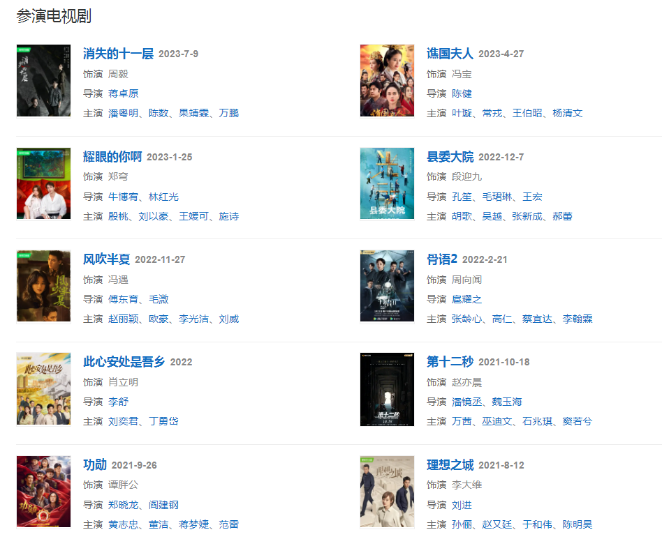 2021218日,主演的電視劇《甜蜜》播出;1018日,主演的都市情感懸疑劇《第十二秒》播出。