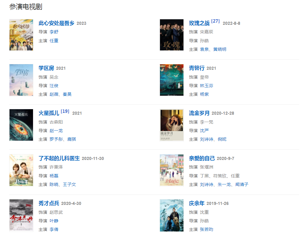 代表作品:闖關東前傳、偏偏愛上你、門·第、男才女貌