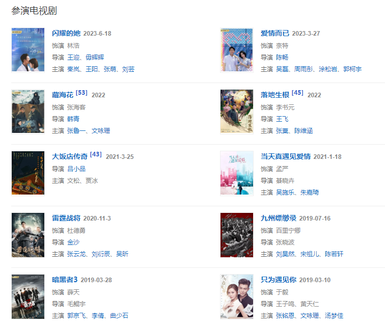 代表作品:東宮、只為遇見你、我的青春遇見你、鹿鼎記、蘭陵王、錦衣夜行