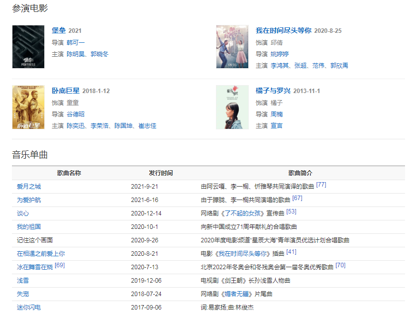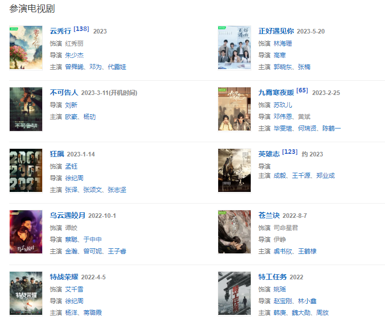 202221日,參加《百花迎春》晚會(huì),演唱歌曲《虎虎生風(fēng)開(kāi)新年》;45日,搭檔楊洋主演的軍旅劇《特戰(zhàn)榮耀》播出,并在劇中飾演邊防團(tuán)中最年輕的電子信息通訊工程師艾千雪;415日,與韓庚、魏大勛、周放合作主演的國(guó)安刑偵題材電視劇《特工任務(wù)》殺青;4月,主演獻(xiàn)禮“二十大”影片《中國(guó)青年:我和我的青春》;53日,參加河南衛(wèi)視《“青春萬(wàn)歲”2022五四青年節(jié)特別節(jié)目》,是該節(jié)目青春見(jiàn)證儀式二的青春使者;54日,參加中央廣播電視總臺(tái)《奮斗的青春——2022年五四青年節(jié)特別節(jié)目》,參演歌曲《新青年 》;56日,以飛行嘉賓參加錄制的綜藝《王牌對(duì)王牌第七季》播出;514日,以飛行嘉賓參加錄制的綜藝節(jié)目《你好星期六》播出。