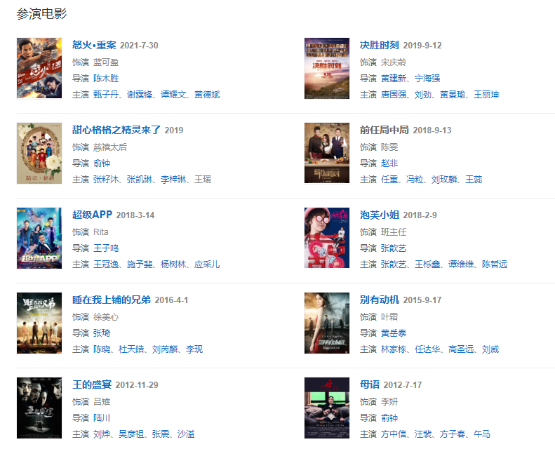 代表作品:還珠格格第三部:天上人間、又見一簾幽夢(mèng)、延禧攻略、怪你過分美麗、大唐女將樊梨花、深宅、一肩之隔、繡娘蘭馨、母語(yǔ)、王的盛宴
