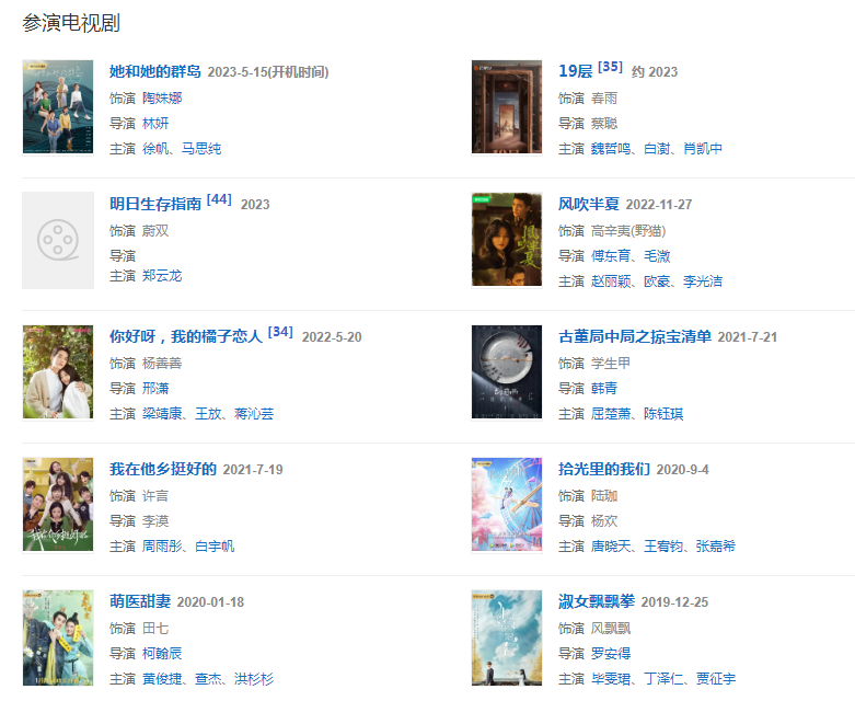 2020年,主演的古裝言情喜劇《萌醫(yī)甜妻》和都市青春言情劇《拾光里的我們》先后上線(xiàn)。
