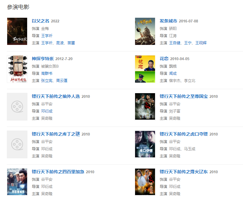2009年,在系列電影《鏢行天下前傳》中飾演女一號(hào)谷平安而被觀眾所熟知 。